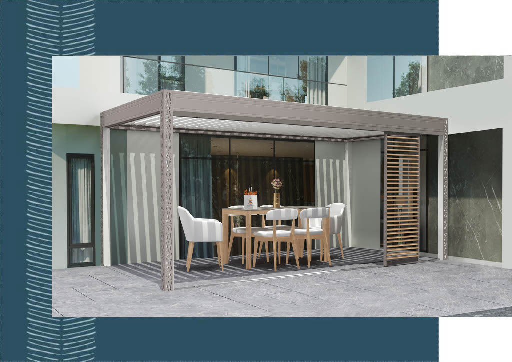 Avec son mélange harmonieux de panneaux vitrés fixes et de lames orientables, la pergola bioclimatique 4 saisons allie design et polyvalence. Profitez d’un espace extérieur élégant, parfaitement adapté à toutes les saisons et à vos envies.